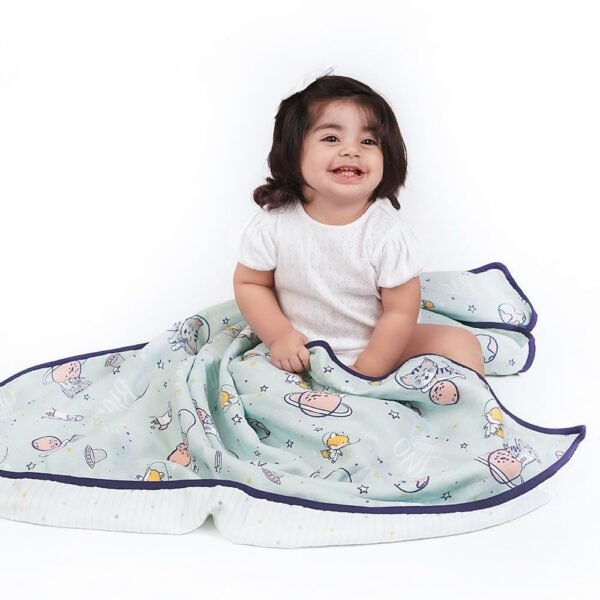 haus & kinder 100% Cotton Reversible Muslin Blanket For Newborn Baby Boy And Girl, Triple Layer Blanket 0-2 Years, Size- 120 Cm X 120 Cm (Spacewalk), Blue, 200 TC – Fast Shipping to USA & Canada