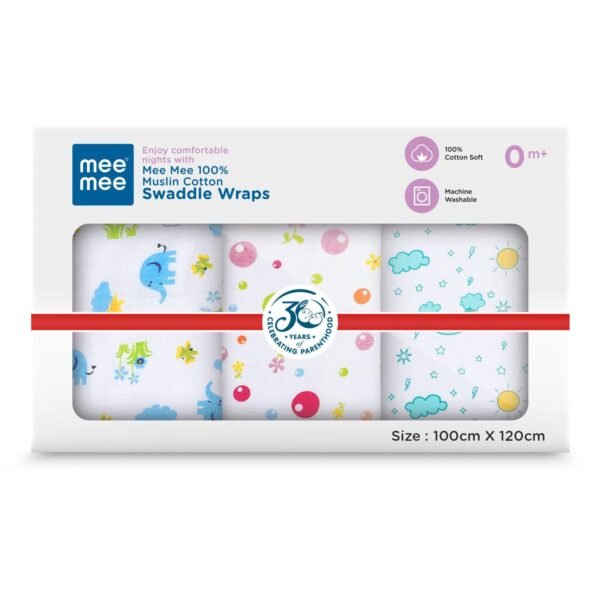 Mee Mee 100% Muslin Cotton Swaddle Wrappers for Newborns (3 Pcs, Multicolour, 120×100 cm) | Soft, Quick-Drying & Highly Absorbent Blankets | Essential Baby Swaddle Cloth, Nursing Cloth & Wrap Set – Fast Shipping to USA & Canada