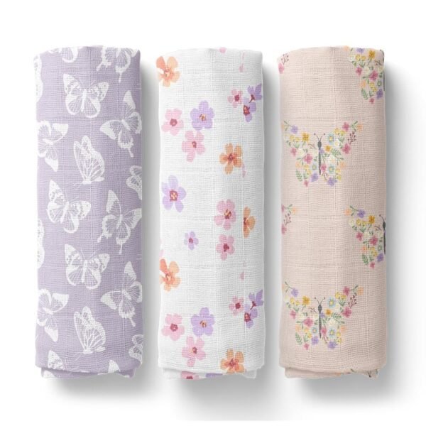 haus & kinder Organic Cotton Muslin Swaddle Cloth- Pack of 3 | Organic Cotton Baby Muslin Swaddle | Organic Swaddle for Newborn | Cottons Swaddles for Baby | Papillon Paradise | 120 X 120 Cm – Fast Shipping to USA & Canada