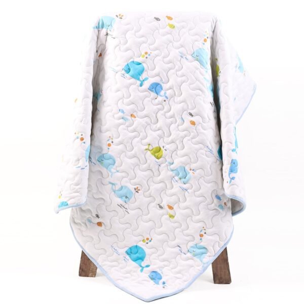 MOM’S HOME Organic Cotton All Season Baby Quilt | Light Weight | Soft | Perfect for Light Winters | 100×120 cm | 0-3 Year | Blue Whale | Reversible – Fast Shipping to USA & Canada