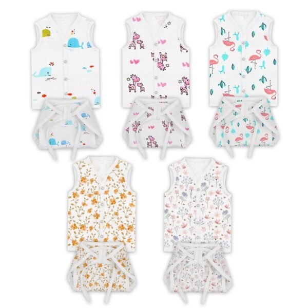 MOM’S HOME Organic Cotton Muslin Jhabla and Nappy for New Born Baby | Bloom, Blossom, Pink Giraffe, Flamingo & Whale | Pack of 5 – Fast Shipping to USA & Canada