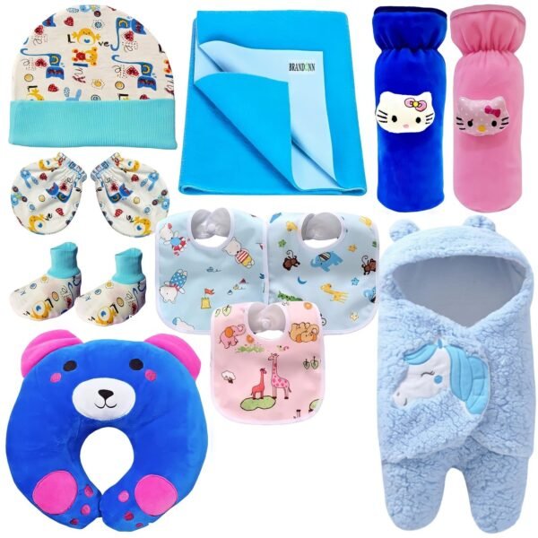 First Kick New Born Baby Gift Set Combo Pack for Baby Boys and Baby Girls Pack of 11 Pcs Unicorn Blue – Fast Shipping to USA & Canada
