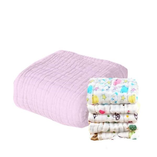 MOM’S HOME Baby Super Soft Absorbent Muslin 6 Layer wash Towel- 100X100 CM – (0-3 Years)- Pink and 5 Muslin Wipes – Fast Shipping to USA & Canada