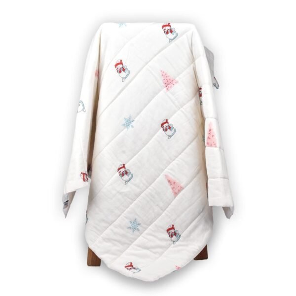 MOM’S HOME Organic Cotton Baby AC Quilt – Snowman – 0-3 Years – 110X120Cms – Fast Shipping to USA & Canada