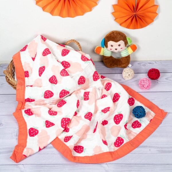 MOM’S HOME Pure Organic Cotton 6 Layer Muslin Blanket for Baby | Ultra-Soft Swaddling Towel for Newborns and Toddlers |100 x100 cm | 0-3 Years (Strawberry) – Fast Shipping to USA & Canada