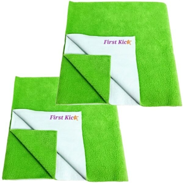 First Kick Waterproof Baby Bed Protector/Mattress Cotton Dry Sheet (140cm X 100 cm) for Born Baby/Kids- (Kiwi Green) – Large – Pack of 2 – Fast Shipping to USA & Canada