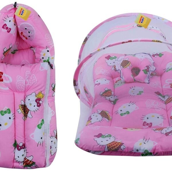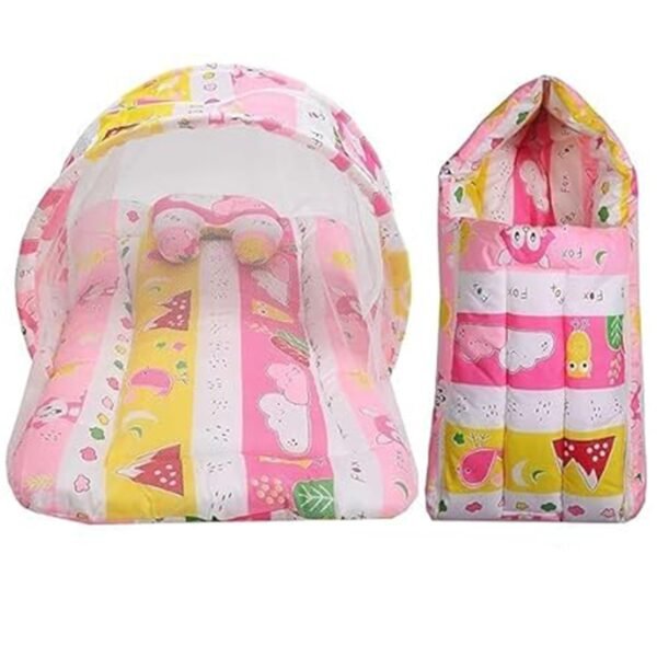 Infantbond Born Baby Bed with Net & Carry Bag (Pink Fox) ? Fast Shipping to USA & Canada