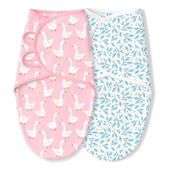 TIDY SLEEP Newborn Baby Swaddle & Hug Me Wrap | 100% Cotton Adjustable Sleep Sack | Soft, Breathable & Lightweight | Velcro Closure for 0-6 Months | Pink Duck and Blue Leaf Pack 2 – Fast Shipping to USA & Canada