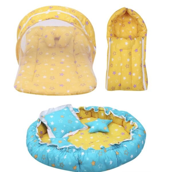 Infantbond Combo Baby Bed with Net & Bedding (Lemon Yellow) ? Fast Shipping to USA & Canada