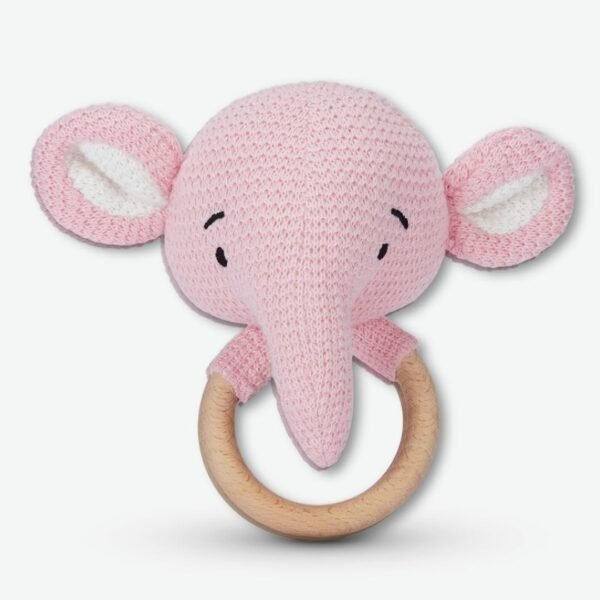 Haus & Kinder Baby Teether Toy ? Pink Jumbo Face with Wooden Ring & Rattle | Soft Muslin Cotton | Soothing Teething Toy for Newborns (15cm, 0?2 Years) – Fast Shipping to USA & Canada