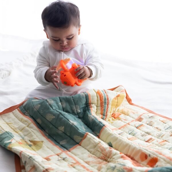 TIDY SLEEP Mulmul Cotton Baby Blanket – Super Soft & Lightweight Comforter for Newborns & Toddlers (0-2 Years) – Jaipuri Razai, All-Season Use, 110×90 cm – Shanghai Street Print – Fast Shipping to USA & Canada