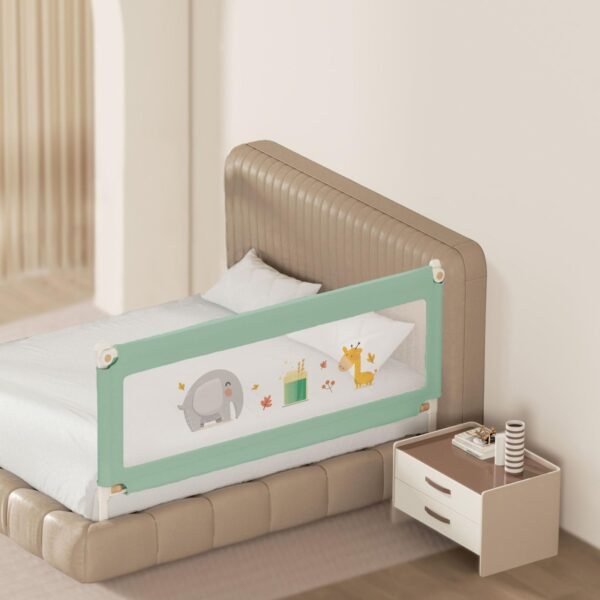 Kids Station Bed Rail for Safety (6ft x 2.6ft), 180cm x 80cm, Baby Safety, Adjustable Height, Foldable Safeguard for Baby Proofing King Size Bed (6’0″, 1 Side, Green, Printed with Pocket) – Fast Shipping to USA & Canada