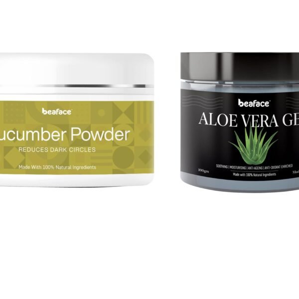 Beaface Combo Cucumber Powder Anti-Aging, Under Eye Facial – 100gm | Aloe Vera Gel Moisturizer Smoother Skin Glow – 100gm (Pack of 2)