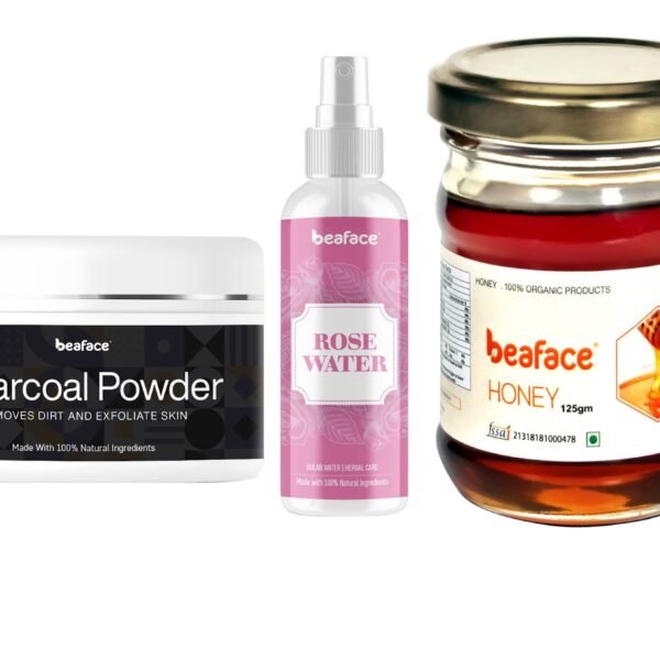 Beaface Combo Pack Charcoal Activated Powder Skin Cleanser – 100gm | Rosewater for Smooth Glowing Skin -100ml Natural Honey Acne & Pigmentation – 125gm (Pack-3)