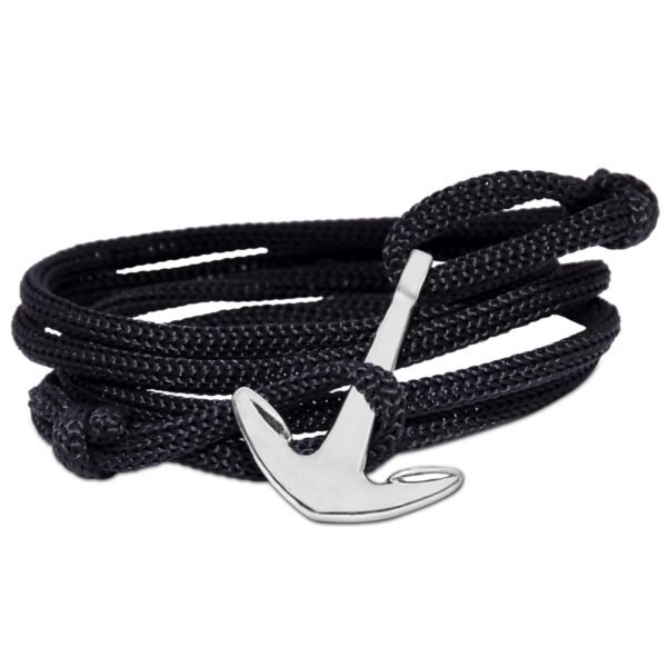 Mahi Anchor In Loop Rhodium Plated Adjustable Black Rope Style Unisex Bracelet BR1100375RBla – Fast Shipping to USA & Canada