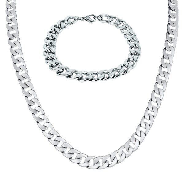 Fashion Frill Silver Stainless Steel Chain With Bracelet Jewellery For Men/Boys – Fast Shipping to USA & Canada