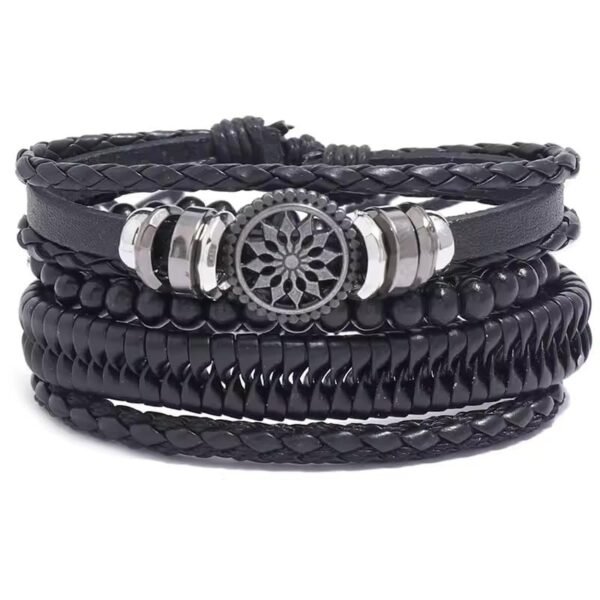 Fashion Frill Stylish Bracelet For Men Multistrand Black Leather Bracelets For Men Boys Wooden Beads Wristband – Fast Shipping to USA & Canada