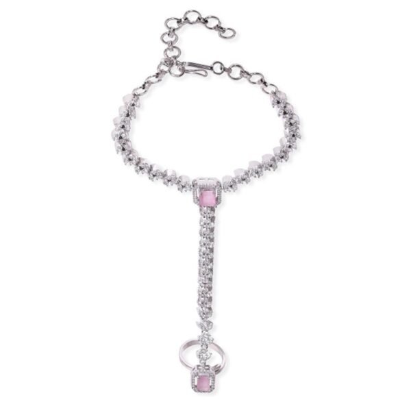 Rubans Rhodium-Plated Pink AD & White Cubic Zirconia Studded Ring Bracelet For Women – Fast Shipping to USA & Canada