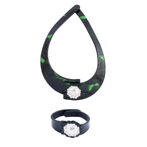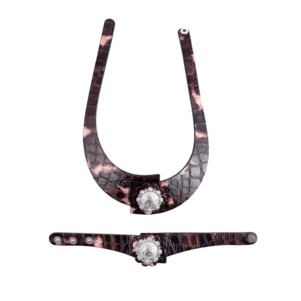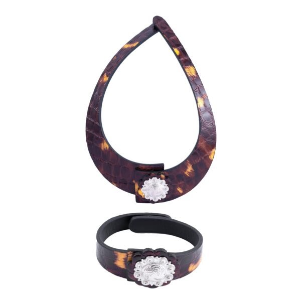 WEAVERHANDCRAFT Handmade Glossy Patent Leather Necklace & Bracelet Set for Women,Dual tone Croco Print Western Concho Pendant Choker bracelet combo, Boho Jewellery Gift set for Girlfriend or Daughter – Fast Shipping to USA & Canada