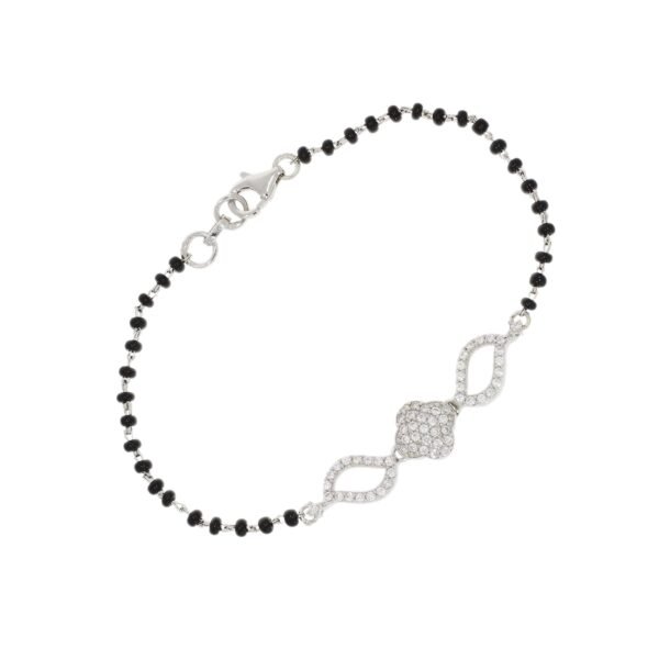 ANAYRA Fine Silver Jewellery Dazzling Clover Pure Silver Mangalsutra Bracelet for Women | Hand Mangalsutra Gift – Fast Shipping to USA & Canada