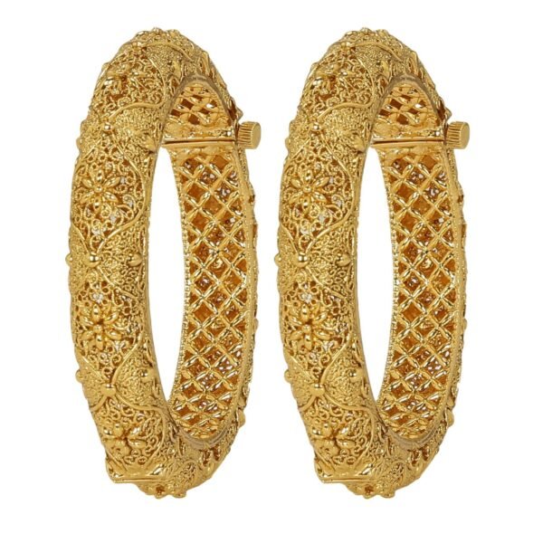 ACCESSHER Set of 2 Gold Plated Traditional Rajwadi Jewellery Inspired Ethnic Filigree Style Screw Closure Bangles/Kada/Festive Bangles for Women and Girls – Fast Shipping to USA & Canada