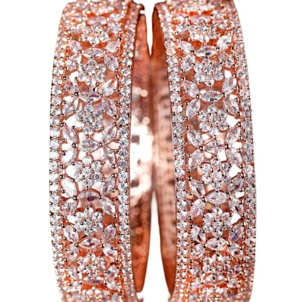 Rubans Set of 2 Rose Gold Plated Zirconia Stone Studded Bangles for Women & Girls, Floral Design Perfect for Any | Festival | Wedding Occasion – Fast Shipping to USA & Canada