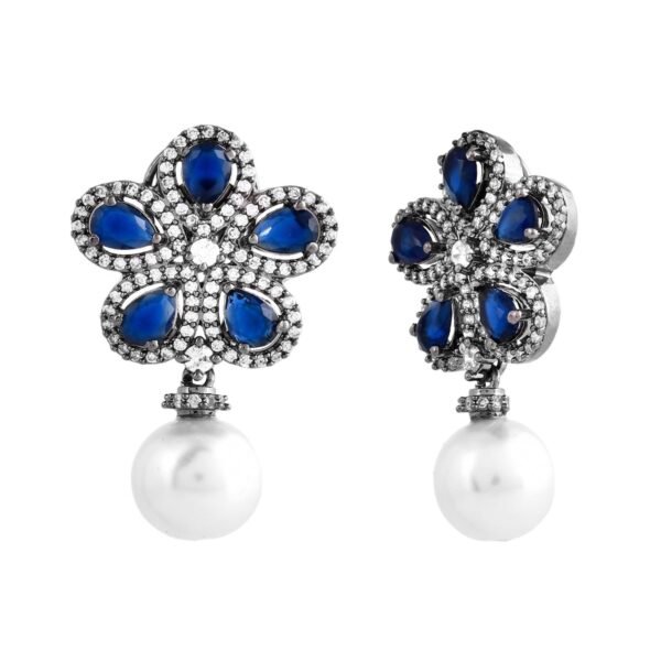 Voylla Sparkling Opulance Midnight Blooms American Diamond Dangler Earrings |Earrings For Women|Statement Earrings For Women|Wedding|Party|Gift For Women|Studs Earrings|American Diamond Earrings| – Fast Shipping to USA & Canada