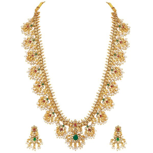Peora Traditional Gold Plated Red Green Beads Studded Long Necklace Drop Earrings Set Ethnic Stylish Fashion Jewellery Gift for Girls Women – Fast Shipping to USA & Canada