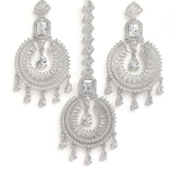 ZENEME Stylish Shiny Round Design Rodhium-Plated Maang Tikka Earring Set Jewellery For Women and Girls – Fast Shipping to USA & Canada