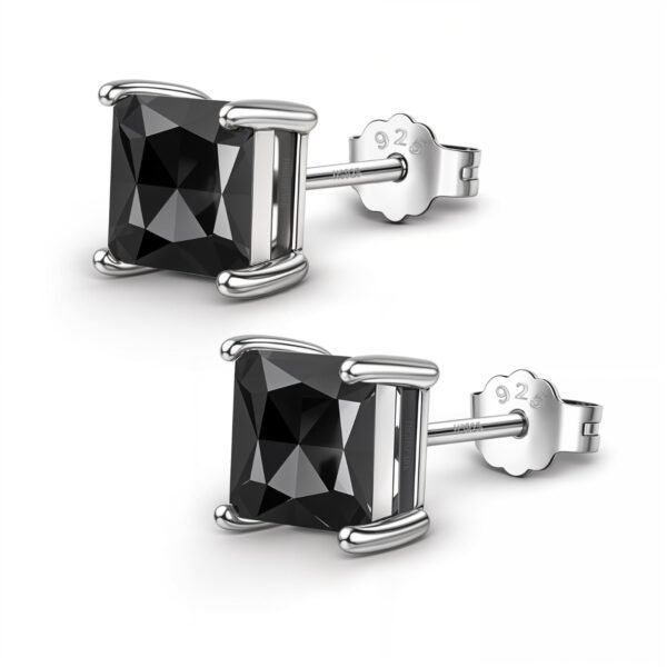 HIGHSPARK 925 Silver Princess Cut Solitaire Earrings Black 6mm – Fast Shipping to USA & Canada