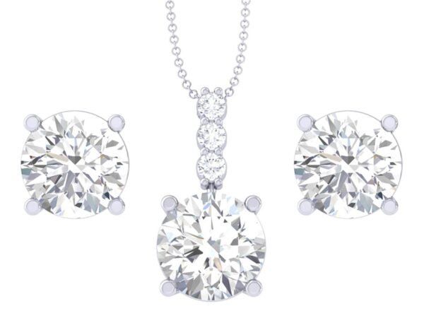 Clara 925 Sterling Silver Round Solitaire Pendant Earring Chain Jewellery Set | Rhodium Plated, Swiss Zirconia | Gift for Women & Girls – Fast Shipping to USA & Canada