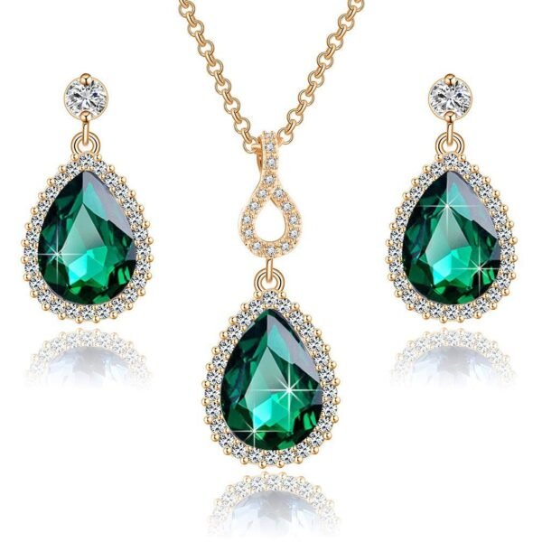 EVEVIC Swarovski Crystals Teardrop Pendant Necklace Earrings for Women 14K Gold Plated Hypoallergenic Jewelry Set (Green) – Fast Shipping to USA & Canada