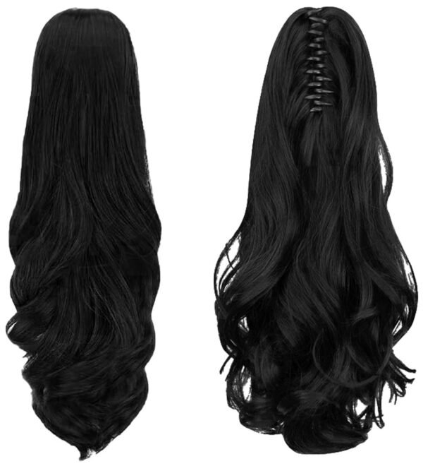 TEMPERIA (1 pcs) Hair Extensions for Women Clip Type – 1 Hair Extension With 2 Styles – Curly Wavy Artificial Hair Clip On Ponytail Long Wig – Natural Looking & Voluminous- Natural Black Colour – Fast Shipping to USA & Canada