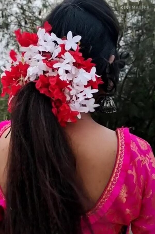 BengCraft Red & White Jasmine Flower Gajra ? Elegant Hair Accessory for Women | Bun Decoration for Weddings, Festivals & Traditional Events – Fast Shipping to USA & Canada