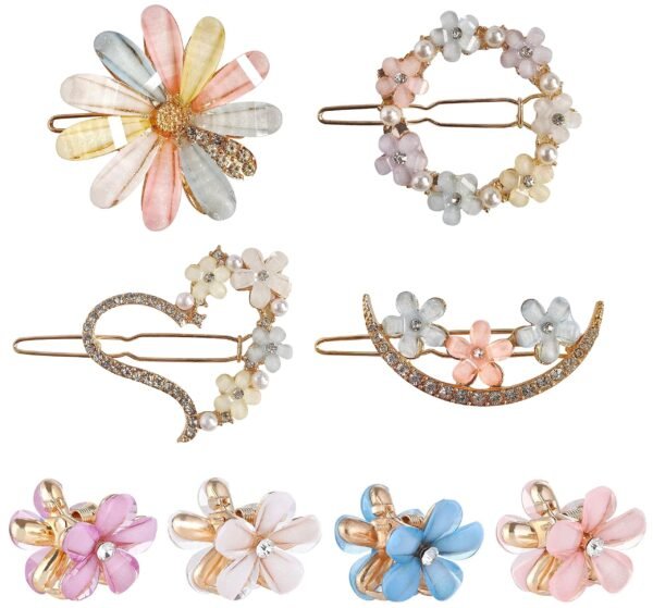 ANNACREATIONS Korean Style Gold Metal Pearl Geometric Stone Lock Hair Pins Hair Clip Hair Accessories Jewellery for Women And Girls (Pack of 8 Pcs) – Fast Shipping to USA & Canada