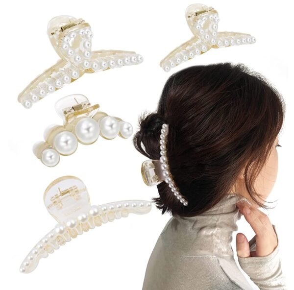 ANNACREATIONS Korean Fashionable Fancy Stylish Large Pearl Hair Claw Clips Long Hair Jaw Clips Clutches Barrettes Hair Accessories for Women’s and Girls (White) Pack of 4 Pcs – Fast Shipping to USA & Canada
