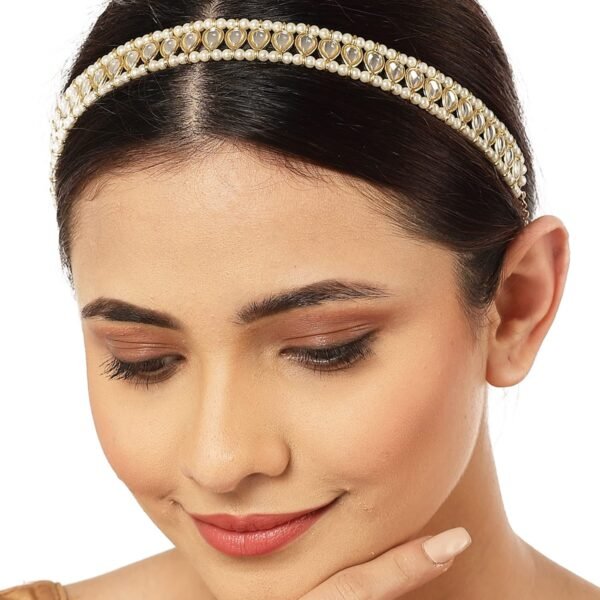 Karatcart Gold Plated Pearl Beaded Drop Kundan Hairband for Women – Fast Shipping to USA & Canada