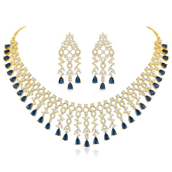 Peora Gold Plated Cubic Zirconia & Blue Beads Studded Necklace & Dangle Earring Contemporary Jewellery Set for Women – Fast Shipping to USA & Canada