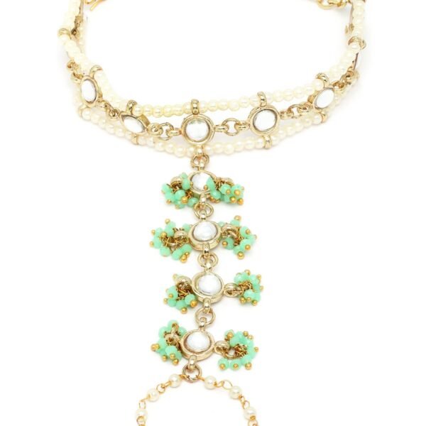 Karatcart Gold Plated Light Green Pearl Beaded Kundan Hathphool – Fast Shipping to USA & Canada