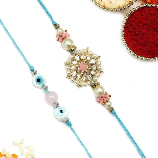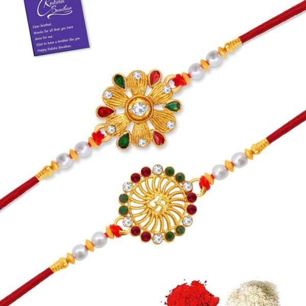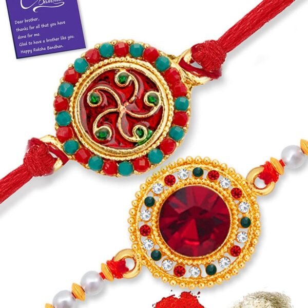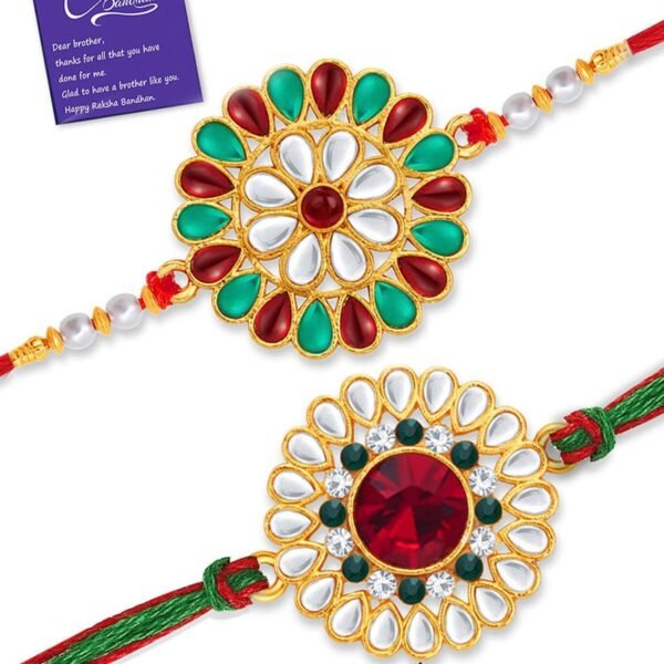 Sukkhi Lovely Kundan Rakhi Combo Set of 2 with Card – Fast Shipping to USA & Canada