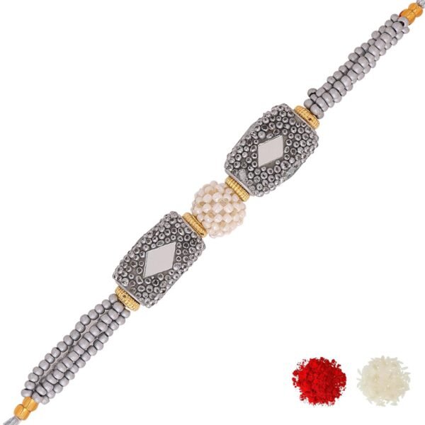 Voylla Silver Beaded and Pearls Rakhi with Roli Chaawal Pack – Fast Shipping to USA & Canada