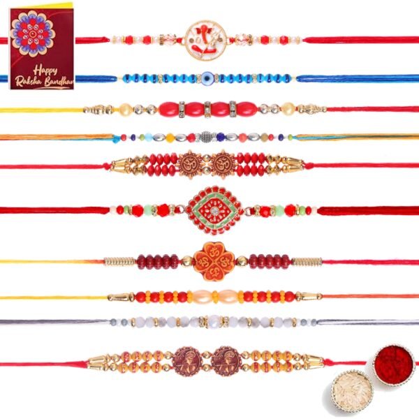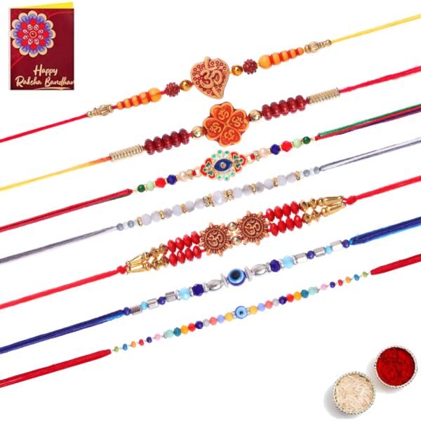 Fashion Frill RAKHI FOR BROTHER SET COMBO OF 7 | RAKHIS FOR RAKSHABANDHAN | RAKSHA BANDHAN RAKHIS (RK638) – Fast Shipping to USA & Canada