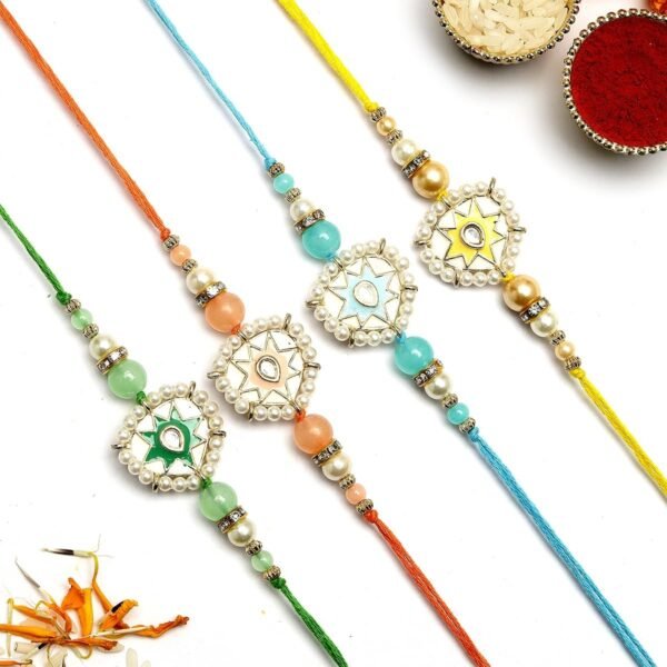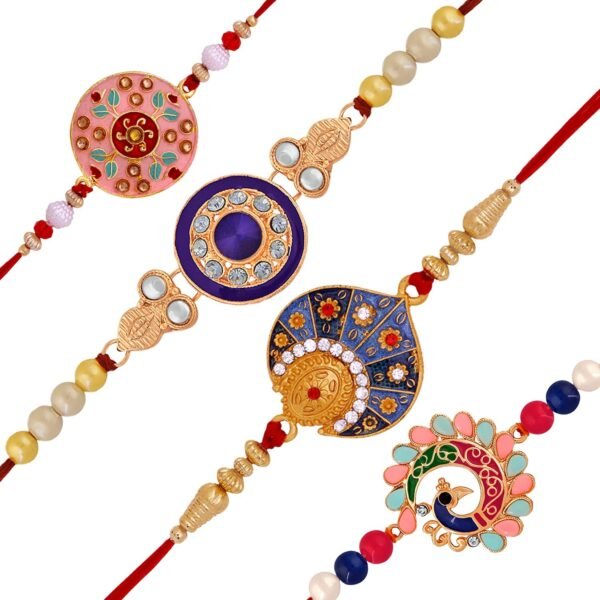 Mahi Combo of Four Meenakari Work Rakhis with Artificial Pearl and Crystal for Brothers (CO1104285RC) – Fast Shipping to USA & Canada