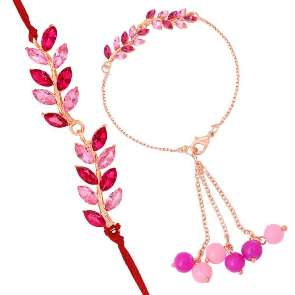 Mahi Combo of 2 Leaf Shaped Beautiful Rakhis with Red Pink and Blue Coloured Crystals for Bhai (RCO1105531M) – Fast Shipping to USA & Canada