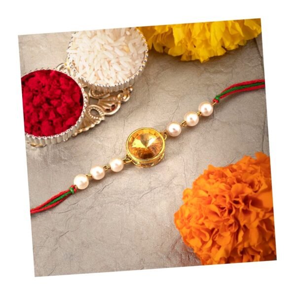 Peora Rakhshabandhan Thread Rakhi for Brother Bhaiya | Crystal & Beads Studded | Rakhi Hamper Roli Chawal & Greeting Card – Fast Shipping to USA & Canada