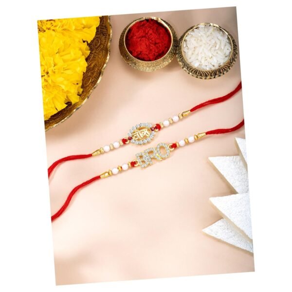 Peora Rakhshabandhan Thread Rakhi for Brother Bhaiya | Kundan Beads & Crystal Studded | Combo Set of 2 | Rakhi Hamper Roli Chawal & Greeting Card – Fast Shipping to USA & Canada