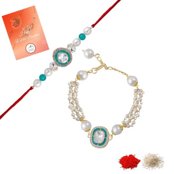 I Jewels Kundan & Pearl Bhaiya Bhabhi Lumba Rakhi Combo (R010-CO) – Fast Shipping to USA & Canada