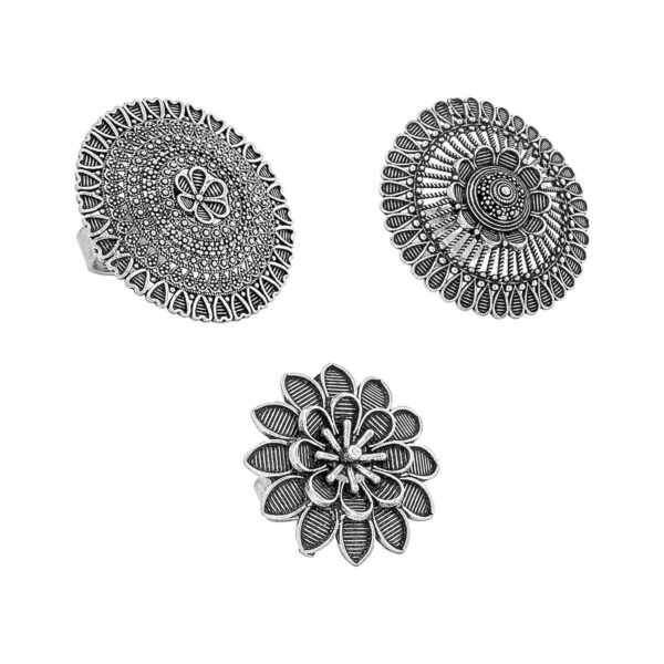 Yellow Chimes Combo Artistic Crafted Oxidized Silver Cocktail Rings for Women – Fast Shipping to USA & Canada