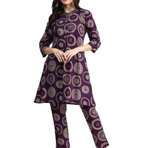 Aavyora Women’s Purple Geometric Printed Cotton Co-ord Set – Fast Shipping to USA & Canada