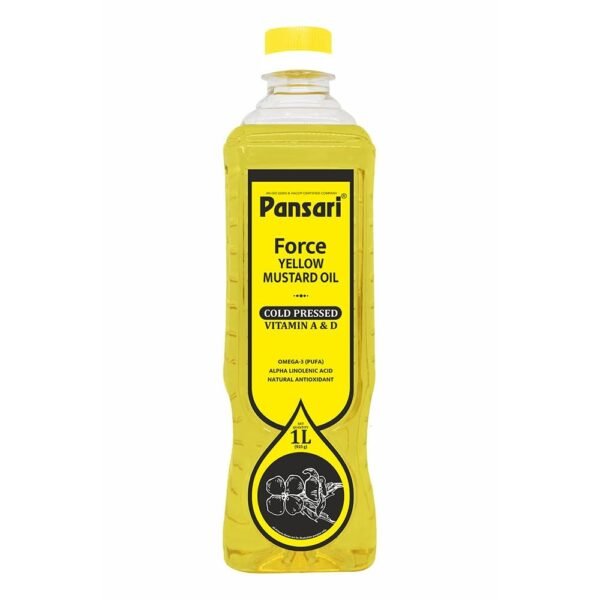 Pansari Force Yellow Mustard Oil – Premium Cold-Pressed First-Press, Pure & Natural, Rich in Omega-3, Ideal for Cooking, Pickling, and Marinating | 1L – Fast Shipping to USA & Canada